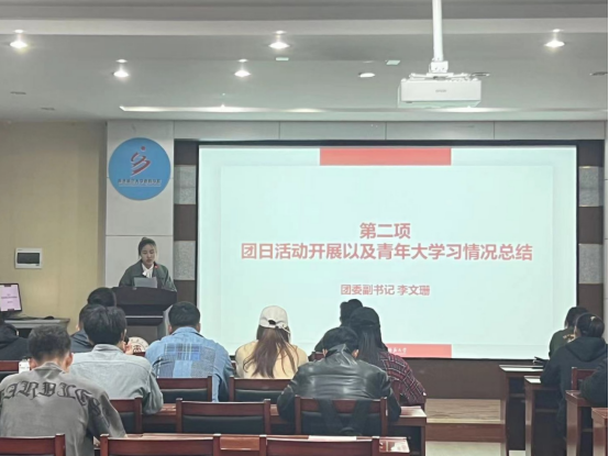 会议第六项,本科生团委副书记耿延斌对五四评优量化考评、素拓与志愿服务情况和微团课大赛做了介绍。他详细介绍了各个奖项的评选要点,并且鼓励大家做好充足的准备,以饱满的热情迎接考核、努力争取。