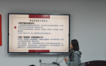 会议第三部分,研究生团务负责人蒋紫薇对研究生的团学工作进行了补充介绍。强调了规范配备支部委员对于研究生团支部的重要性,精心选拔出有责任心、有担当、有能力的研究生担任支部委员,为研究生团学工作的顺利开展提供有力的组织保障。
