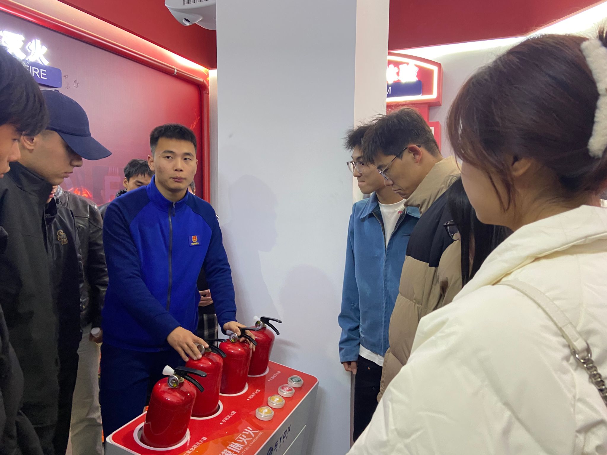 随后,在工作人员的引导下,大家依次参观了消防器材展示区、火灾模拟体验区、消防知识科普区等多个功能区域。在消防器材展示区,各式各样的消防器材整齐排列,工作人员详细介绍了灭火器、消火栓、防火服、空气呼吸器等常用器材的使用方法、适用场景及维护要点,并现场进行了演示。支部成员们纷纷踊跃参与,亲身体验了灭火器的正确操作,并切实掌握了使用技巧。