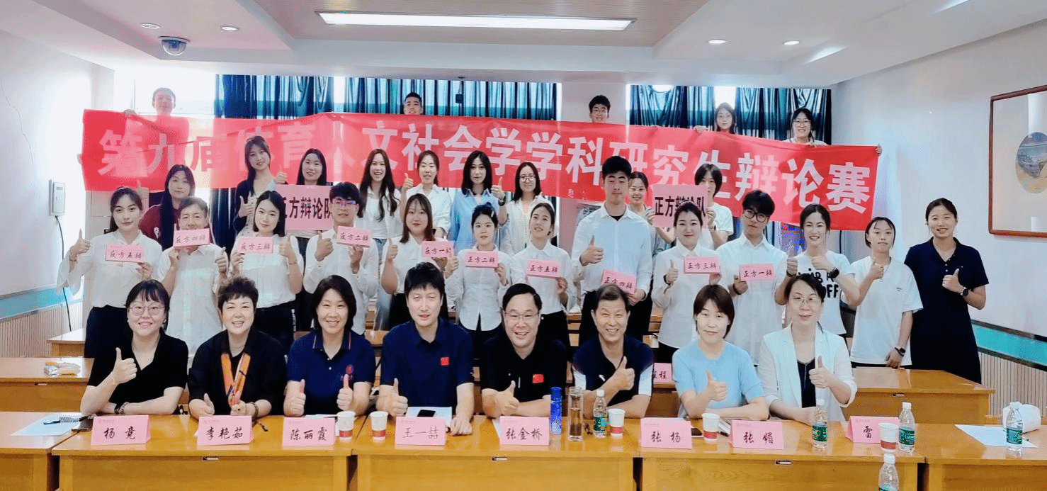 体育人文社会学专业2023级研究生代表队获得本次辩论赛的“优胜队”;王晶和王文文两位同学被评为“最佳辩手”;李雯霏、鲁鹏源、蒋紫薇、于长茹四位同学被评为“优秀辩手”。