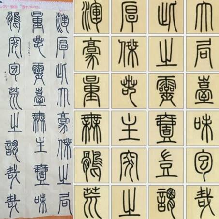 李继斌:刚临摹《赠肯园四体书册篆书》觉得很好看,容易上手,可是越写越迷惑,现在里面的一些方和圆把握不住,手腕也比较僵硬。识字是个大问题,于是看着《说文部首》来学,现在,在记字形上比以前好了一些,也算是一个小小的收获。