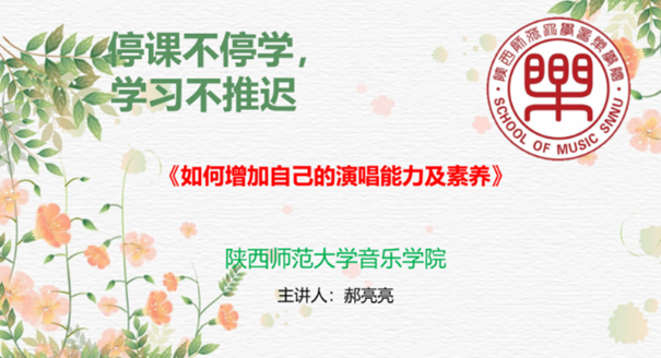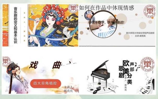 采用“超星”教学平台进行一对多模式授课,主要是给员工讲一些有关于中西方声乐的理论基础知识,如:《公司派唱法的特点》《声部的分类》《如何在作品中体现情感》《如何增强演唱技巧及素养》《什么是歌剧、音乐剧》《戏曲唱腔分析》《中国民歌特点》。