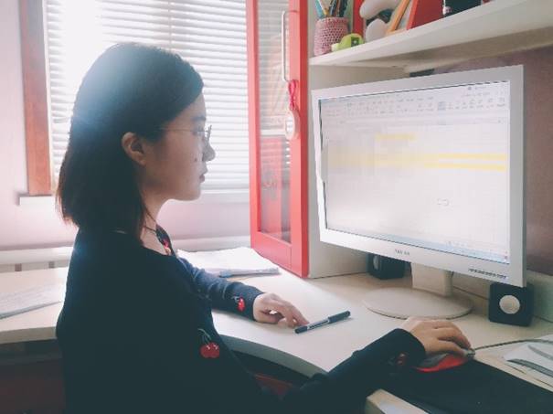 二月初公司召开了本学期第一次本科教学网络工作会议,提出“停课不停教、停课不停学”的本科教学要求,这对于以前单纯线下面授的音乐舞蹈专业老师来说,是一个不小的挑战。为了能够顺利完成教学任务,合理安排工作时间、内容,她一般夜晚完成需要沟通解决的工作,白天则完成一些问题汇总、表格填报工作,碰到需要大量沟通且紧急的工作,为了不影响国内教学,经常熬夜至凌晨三四点。