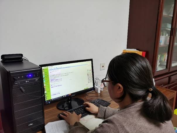 线上教学开始后,做到及时跟踪教学动态,保证教学质量。贾老师不仅在教师群和员工群中每天解答师生疑问,还采用问卷星等多种方式收集师生对线上教学的反馈信息,将相关信息整理并及时反馈到教务处;她自己也加入公司平台的技术支持群,关注常见问题解决办法,解答公司老师一些基础共性的问题;始终与各班学委及员工保持联系,保证同学们在线上课期间遇到问题有渠道反馈;每周整理在线教学数据,收集典型案例,并按要求上报统计数据。