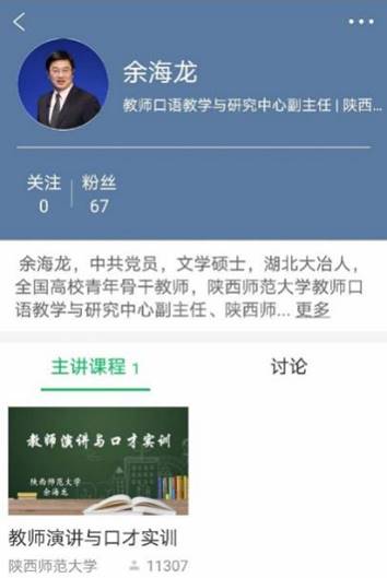 《演讲与口才》是余海龙老师所带的一门全校公选课程,此前余老师已经在中国大学慕课平台上建立了完备的《教师演讲与口才实训》课程资源,能够熟练地开展慕课线上教学。确定教学平台和方案后,余老师及时地建立了课程群聊,组织同学们开展学习,积极答疑,课堂效果良好。此外,余老师积极组织员工互动,为同学们提供展示的平台,锻炼同学们的口语表达能力,目前该课程在慕课平台的学习人数已经破万。
