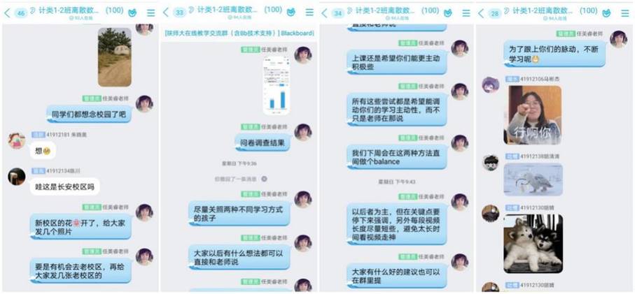 本周内各大教学平台运行基本平稳顺利,个别时候遇到网络不顺畅问题,教师们能够及时调整授课方式,同时采用其他交流活动方式,最大程度降低网络不顺对网络直播教学的影响,强化师生交流互动效果;部分课程采用“课程平台+QQ群/微信群”等多种方式融合实施线上教学,相互弥补了不足,但近期在督导过程中发现,部分课程对QQ群/微信群等即时交流互动方式过于依赖,导致课程平台使用率较低,因为其他线上交流方式不能有效保存在线教学过程中的资料,也不利于教学管理。因此,建议老师们充分利用课程平台的功能开展交流互动、发布提交作业、进行测试考核等教学活动。