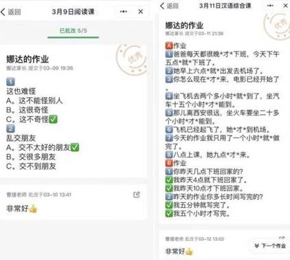 针对线上教学特点,作业布置讲求少而精。为保证对员工学习效果的监控,每个班的作业都私发到个人,提醒员工完成,员工在钉钉app内线上提交作业,老师在线反馈。