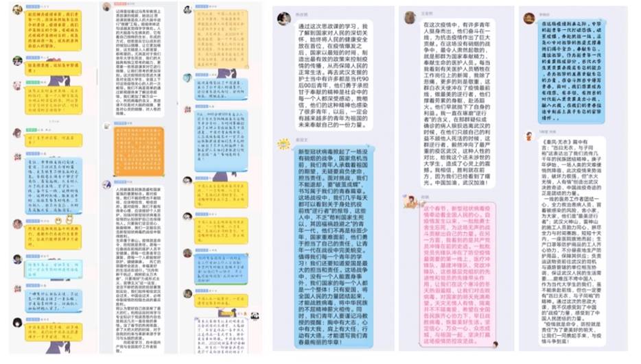 师生们纷纷表示,“同上一堂疫情防控思政大课”以直播的方式为全国高校师生奉上了一场站位高远、立意深刻、解读精妙的思想盛宴。在这场疫情大考面前,充分展现了中国人民团结一心、同舟共济的精神风貌,彰显了中国特色社会主义制度的显著优势,增强了广大师生的理想信念和责任担当。