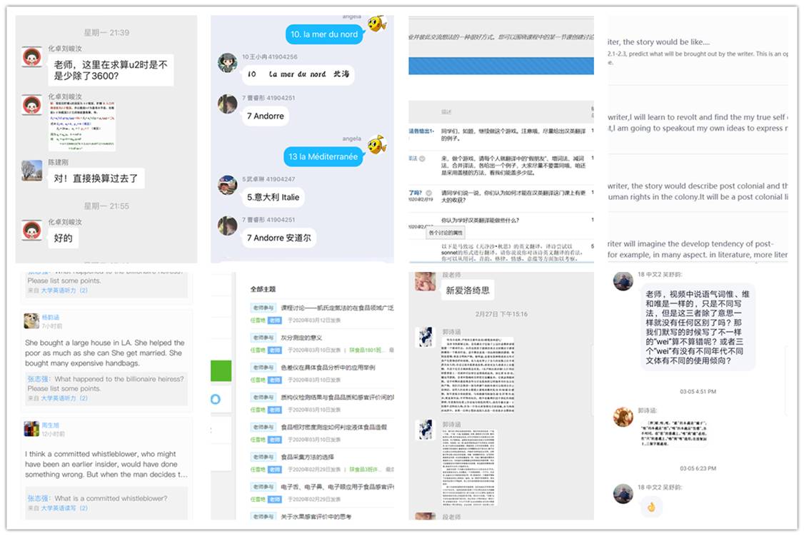 利用上课之外的时间,师生们针对存在的疑问和难点在课程交流群或者在线教学平台进行研讨,在交流中碰撞出思想火花,促进同学们对知识的掌握和理解,留存的记录也可供员工们长期参考,体现出利用网络进行教学互动的便捷性。