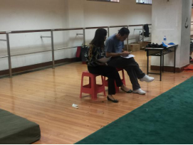 杨小帆与王超副教授为参赛选手进行磨课、指导